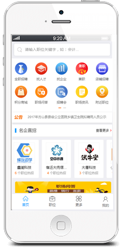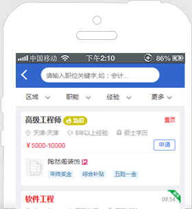 海量工作机会等着您,同一时刻您将面对数以十万的工作机会;帮助您记忆最近搜索条件,简化您的搜索操作。